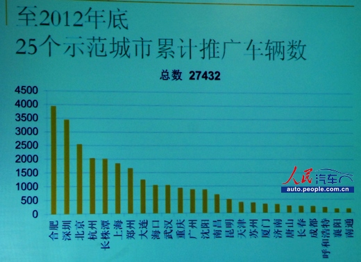 圖1:截至2012年底,25個(gè)新能源汽車(chē)示范城市累計(jì)推廣汽車(chē)數(shù)量