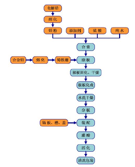 鉛酸蓄電池產品生產工藝主流程圖