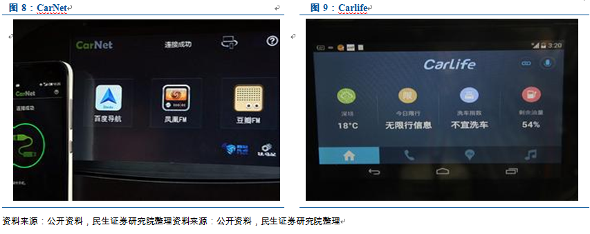 (1)百度:CarNet到Carlife平臺入口到接管車機 2014年4月百度發布其智能車載產品CarNet,只需一根USB線,就可以使用原有的導航儀屏幕,將手機豐富的功能在