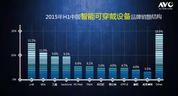 2015年H1中國智能可穿戴設備品牌銷額結構
