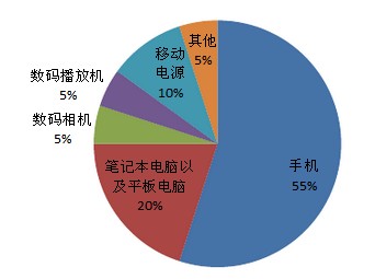 隨著技術(shù)的進(jìn)步、3G的應(yīng)用、數(shù)碼產(chǎn)品的普及,基于無(wú)線體驗(yàn)的移動(dòng)設(shè)備的需求越來(lái)越大,而目前能夠滿足移動(dòng)設(shè)備待機(jī)要求的成熟電池只有鈷酸鋰電池,事實(shí)上,在消費(fèi)類(lèi)數(shù)碼產(chǎn)品領(lǐng)域,鈷酸鋰電池仍然處于主導(dǎo)地位。從終端需求來(lái)看,我國(guó)鈷酸鋰的市場(chǎng)55%是針對(duì)手機(jī),20%是針對(duì)筆記本及平板電腦,5%是數(shù)碼相機(jī)/攝像機(jī),5%是MP3/MP4/DVD數(shù)碼播放機(jī),10%是移動(dòng)電源,5%是藍(lán)牙耳機(jī)/游戲機(jī)等市場(chǎng)。(圖3)