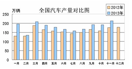 2013年我國汽車工業(yè)再次取得良好成績:全國汽車產(chǎn)銷2211.68 萬輛和2198.41 萬輛,比上年分別增長14.8%和13.9%,比上年分別提高10.2和9.6個百分點,增速大幅提升,高于年初預(yù)計。產(chǎn)銷突破2000萬輛創(chuàng)歷史新高,再次刷新全球記錄,已連續(xù)五年蟬聯(lián)全球第一。