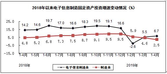 1-4月,電子信息制造業(yè)固定資產(chǎn)投資同比增長6.7%,比1-3月加快1.2個(gè)百分點(diǎn),高于同期制造業(yè)投資增速4.2個(gè)百分點(diǎn)。
