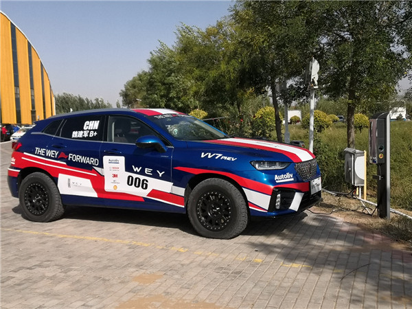 10月2日清晨,筆者按“線索”來到了天鵝湖風(fēng)景區(qū)附近。其實在10月1日的下午,一輛停靠在天鵝湖風(fēng)景區(qū)里充電的VV7 PHEV已經(jīng)引起筆者的注意——車身上赫然寫著“魏建軍B+”,很明顯這是一輛“戰(zhàn)車”。以魏建軍的行事風(fēng)格,不會因為“凹造型”而特意設(shè)計一款比賽用車,既然它在這兒就說明一定有其“用武之地”。