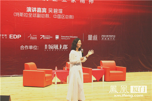 吳碧瑄有著豐富的跨國公司管理經(jīng)驗(yàn),在加入特斯拉之前,曾在麥肯錫、摩托羅拉、蘋果等公司擔(dān)任高管。今天她帶來了關(guān)于特斯拉、關(guān)于企業(yè)發(fā)展、關(guān)于理想等方面的親身感悟,讓現(xiàn)場(chǎng)觀眾深受啟迪。