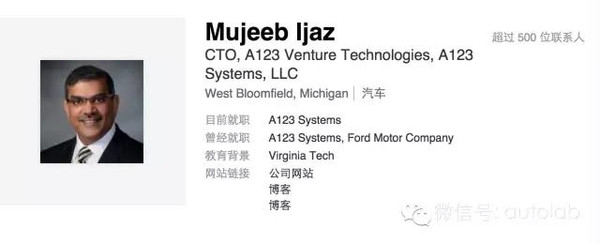Mujeeb Ijaz是蘋果從A123 Systems公司給挖過來了,這是一家主要從事開發(fā)高級納米磷酸鹽磷酸鐵鋰電池和能量儲存系統(tǒng)的公司。(大致就是一種續(xù)航能力略屌的電池)