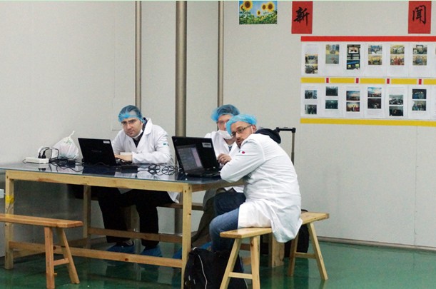 在“天津英利新能源”生產車間,三位外籍工程師在認真工作。(央視網記者郭城攝影)