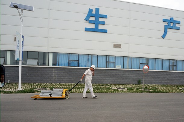 天津英利新能源有限公司廠區內,仍在緊張有序地生產光伏產品(央視網記者郭城攝影)