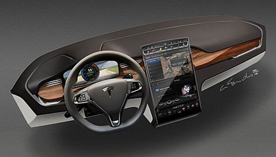 車內部分,特斯拉Model X將延用Model S的設計,所有的行車信息以及控制系統都整合在超大尺寸的17英寸觸碰屏幕上。