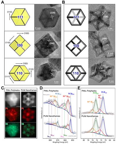 Yang說:“相比其他的人工合成中空納米結構的嘗試,我們的做法不需要通電、不需要使用過強的氧化劑,只需在空氣中自發進行。鉑-鎳納米框架的開放結構滿足了先進納米點催化劑設計中的一些法則,如高面容比、好的三維接近性、更少的貴金屬用量等?!?