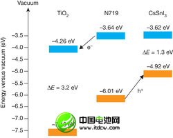 CsSnI3固態(tài)太陽能電池組件的能級。