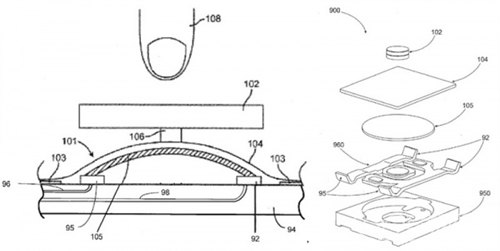 大量解決液態金屬合金實際問題的專利也開始出現,上周四又有17份液態金屬合金專利公布。當然,很多專利并沒有直接提到蘋果,不過專利發明人都是一直參與液態金屬開發的蘋果員工。這些專利中最有趣的一項就是使用液態金屬合金材料打造壓力傳感器,壓力傳感器經常被用在移動設備的按鍵和開關下,這種開關必須在頻繁使用下保持彈性。這份專利中的示意圖顯示蘋果可能將會使用液態金屬合金制作iOS設備Home鍵下的壓力傳感器。