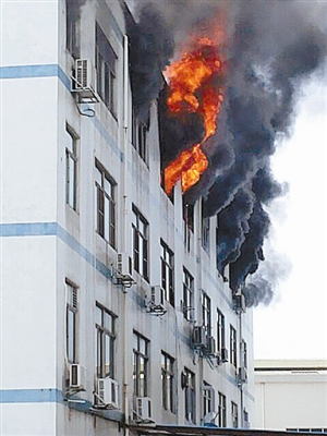 據現場一名工人介紹,昨日下午1點20分左右,他們正在宿舍午睡,一名起床上洗手間的同事突然看到,距離宿舍僅不到8米的工房4樓燃起了大火。“太恐怖了,當時火很大,我們快被嚇死了。”該工人說,黑濃煙不斷從窗戶沖向天空,形成了黑色的蘑菇云,而起火的廠房4樓幾乎與他們所住的宿舍平行,大火不停地向宿舍蔓延,并將他們走道外晾曬的衣服全部燒毀,宿舍樓外墻也被燒得漆黑一片。大家被驚醒后迅速逃出宿舍樓下,有的工人甚至爬山到后面的一棟宿舍樓內。
