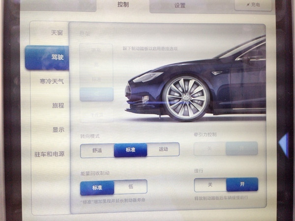 3、車(chē)身大,穩(wěn),懸架可調(diào)很實(shí)用。特斯拉的車(chē)身尺寸屬于比較大的,軸距達(dá)到2.96米,后視鏡打開(kāi)的最大寬度達(dá)到了2.189米。行在路上用一位朋友的話講,有一種“開(kāi)船”的感覺(jué),不過(guò)整理是很穩(wěn)的,特斯拉的方向盤(pán)偏大偏硬。