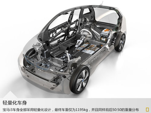 作為寶馬的未來(lái)的技術(shù)的體現(xiàn),寶馬i3匯聚了寶馬最新的科技與車(chē)中,在車(chē)身重量上寶馬i3已經(jīng)足夠輕質(zhì)化,僅為1195kg,并且在含有的數(shù)量眾多的電池組整車(chē)上還做到了前后50:50的重量比,這將保證寶馬i3一定的操控性能。