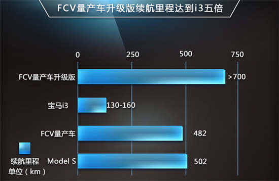 寶馬旗下純電動車型-i3近日正式在國內上市,該車共分為純電動和增程式電動兩種不同版本,其中純電動版匹配的是功率為22kw的鋰離子點尺寸和一臺電動機,滿電狀態下續航里程為130-160公里。此外,在純電動車領域中,特斯拉首款車型Model S續航里程達到502km,實屬該領域當之無愧的佼佼者,加上其獨特的營銷策略,而被消費者廣泛關注。但豐田FCV量產車續航里程與這兩款車型相比較并不落于下風,新研發的FCV量產車升級版可達到超過700km的續航里程足以“俯視”該領域任何對手。