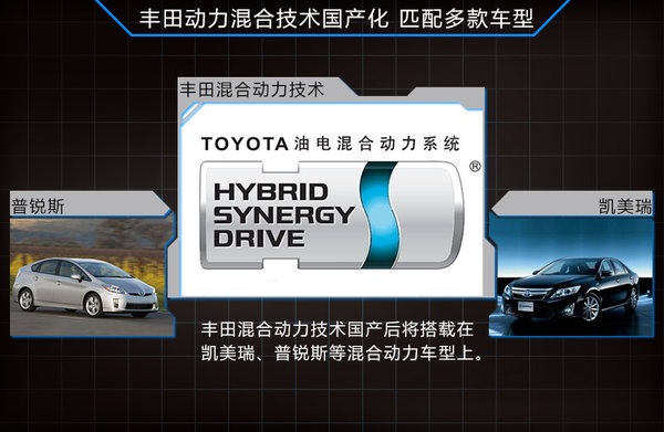 去年,豐田在中國發布“云動計劃”,宣布將通過位于常熟的研發中心實現混合動力車型的國產化。豐田汽車社長豐田章男表示:“豐田將開發搭載國產混合動力總成的車輛,并力爭在2015年左右實現在一汽豐田、廣汽豐田的生產和銷售。”目前豐田在華國產的有普銳斯、凱美瑞兩款混合動力車車型,混合動力技術實現國產后將搭載在這兩款車型上。豐田汽車研發中心技術負責人表示:屆時,普銳斯混合動力車型的價格有望降低2萬元左右。