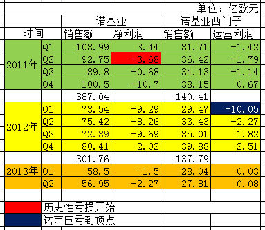 正是過(guò)早地放棄Symbian,使得諾基亞在2011年第二季度,出現(xiàn)了3.68億歐元的巨虧。如果說(shuō)這次巨額虧損,讓業(yè)界和股市震驚的話,那么接下來(lái),從2011年第四季度開始的四個(gè)季度,就是將諾基亞股票打入十八層地獄了。