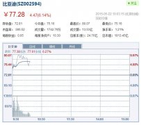 外媒:比亞迪擬通過非公開發行A股籌資約100億元