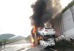 G50S高速公路上一輛由重慶開往杭州的5橋掛車在行駛至豐都收費站附近時,右后輪突然爆胎,并發生火災,火勢迅速蔓延,導致車上所載的14輛電動轎車過半被燒毀,所幸消防方面迅速趕到后及時撲救,保住了其中6輛。...