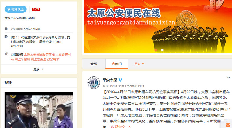 • 山西太原警方通報網傳電動出租車司機死亡真相 日期:2016-04-26 14:45:05 點擊:848 好評:0