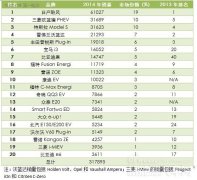 2014年全球電動(dòng)汽車品牌銷量排行榜(TOP20)