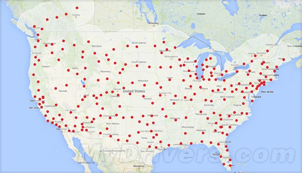 看圖驚呆了!特斯拉超級(jí)充電站已橫貫美國(guó)東西