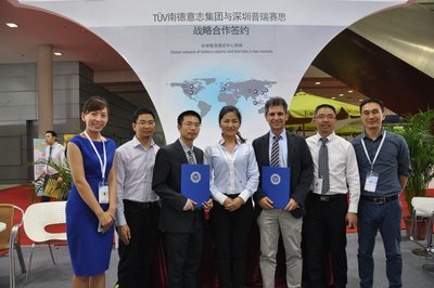 TUV南德意志集團與深圳普瑞賽思檢測技術有限公司在第十二屆中國國際電池技術交流會/展覽會(CIBF2016)上簽訂動力電池產品測試認證戰略合作協議。...