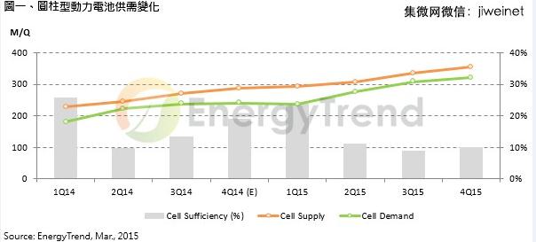 TrendForce旗下綠能事業處EnergyTrend研究經理呂理舜表示,隨著環保意識的興起,電動自行車與電動汽車在市場的普及度逐漸增加,亦帶動圓柱型動力電池在移動載具需求將從去(2014)年的1.11億顆成長至今(2015)年1.45億顆,年成長30%。...