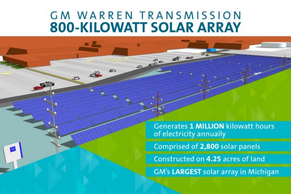 通用汽車日前宣布將在其沃倫變速箱工廠打造800千瓦太陽能電池陣列。該公司已經與能源供應商DTE Energy公司達成合作打造通用公司在密歇根州最大的太陽能發電裝置。據悉,該太陽能電池陣列共由2800塊太陽能電池板組成,其產生的電力將可用于電網中,每年的發電量可達一百萬千瓦時。...