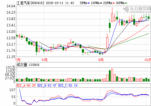 江淮汽車:收到2015年國家新能源汽車推廣補貼4.5億