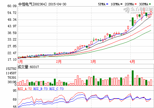 30日充電樁概念股盤后統計 中恒電氣漲5.27%