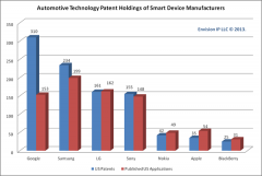 智能汽車市場備戰:谷歌專利數已是蘋果五倍