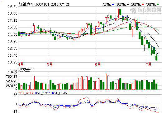江淮汽車2014年營收341.95億 業績同比下滑四成
