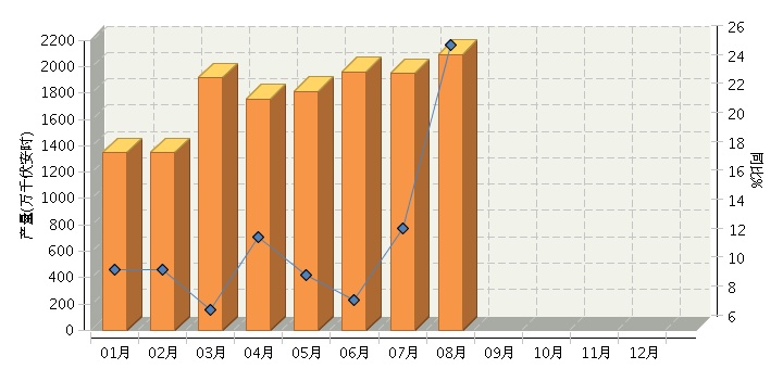 8月鉛蓄電池產量2095.54萬千伏安時 同增25.71%