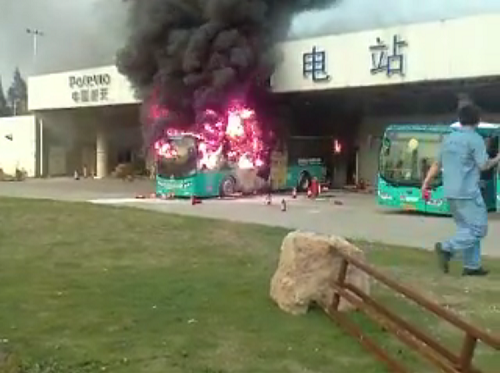深圳一輛五洲龍電動大巴充電時電池燃燒爆炸