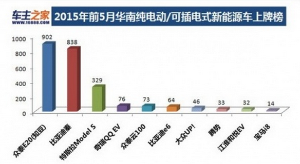 2015年前五月華南新能源車上牌榜單 知豆奪冠