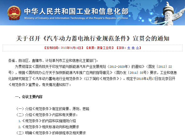 工信部:17日召開《汽車動力蓄電池行業規范條件》宣貫會