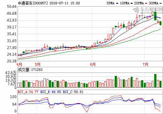 11日新能源汽車概念股盤后統計 中通客車跌幅5.09%