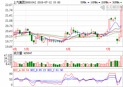 12日新能源汽車概念股盤后統計 上汽集團漲幅8.50%...