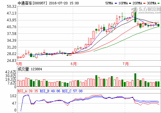 21日新能源汽車概念股盤后統計 中通客車跌幅5.36%