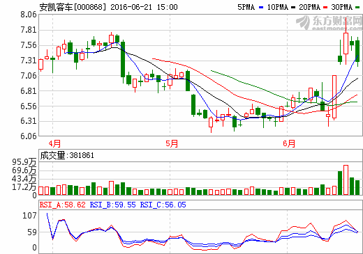 17日新能源汽車概念股盤后統計 安凱客車漲幅6.59%