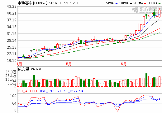 23日新能源汽車概念股盤后統計 中通客車漲幅7.49%
