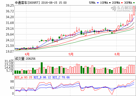 15日新能源汽車概念股盤后統計 中通客車漲停