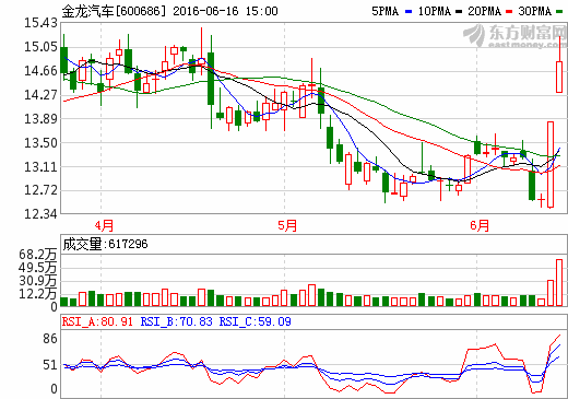 16日新能源汽車概念股盤后統計 金龍汽車漲幅7.01%