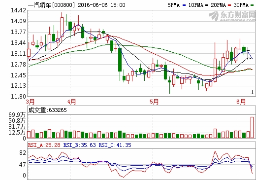 6日新能源汽車概念股盤后統計 一汽轎車跌停