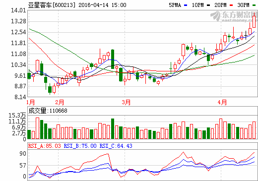14日新能源汽車概念股盤后統計 亞星客車漲幅6.49%