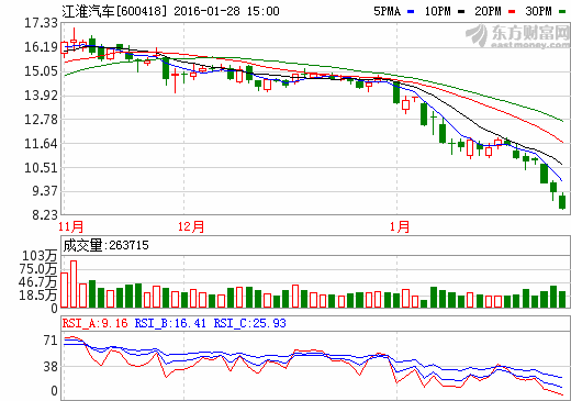 28日新能源汽車概念股盤后統(tǒng)計 江淮汽車跌幅8.40%