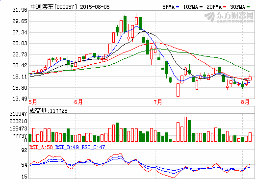5日新能源汽車概念股盤后統計 中通客車漲幅5.26%