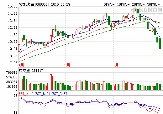 29日新能源汽車概念股盤后統計 安凱客車跌停